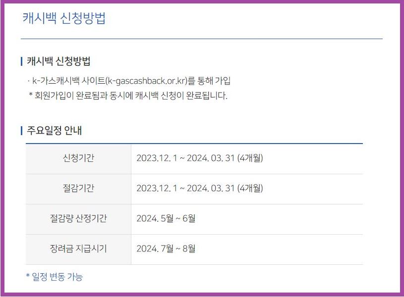 도시가스 절약 캐시백 신청기간, 절감기간, 비교기간 및 지급기준