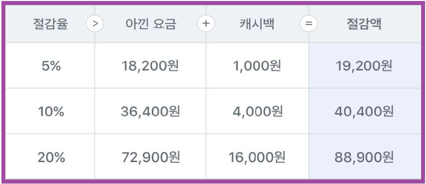 캐시백은 절감량 x 캐시백 지급단가로 계산이 됩니다.