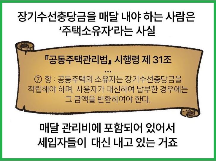 거주하면서 필수납부금인 관리비 중 세입자라면 돌려받을 수 있는 관리비가 있습니다. 모르면 손해인 이 요금 바로"장기수선충당금"입니다. 자세한 내용 같이 알아보겠습니다.