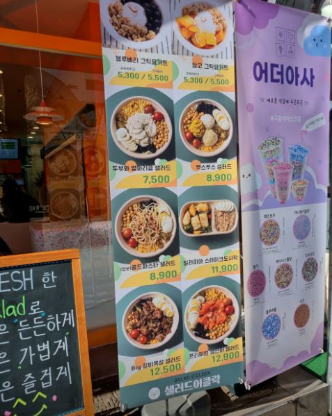 이곳은 11월에 송사부크로켓에서 변경되어 지금은 크로켓나 도넛은 판매하고 있지 않아요. 지금은 주메뉴로 샐러드, 그릭요구르트, 커피를 하고 있어요. 저는 아직 샐러드는 먹어보지 못했지만 리뷰도 너무 좋고, 샐러드 종류도 다양해서 다이어트하시는 분들이 지겹지 않은 샐러드를 먹으면서 영양섭취하기 딱일 것 같아요. 저도 살임신살이 아직도 안 빠져서 계속 살과의 전쟁을 하고 있었는데 이젠 집에서 먹는 게 지겨울 때 한 번씩 먹어봐야겠어요.