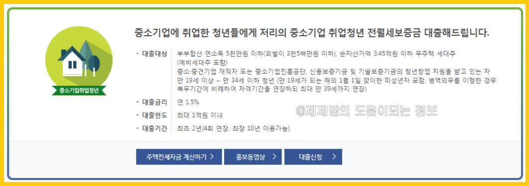 대출금리는 최초 1.5%로 2년 후 연장심사가 진행되며 총 2회(4년)까지는 1.5% 금리가 전용됩니다.