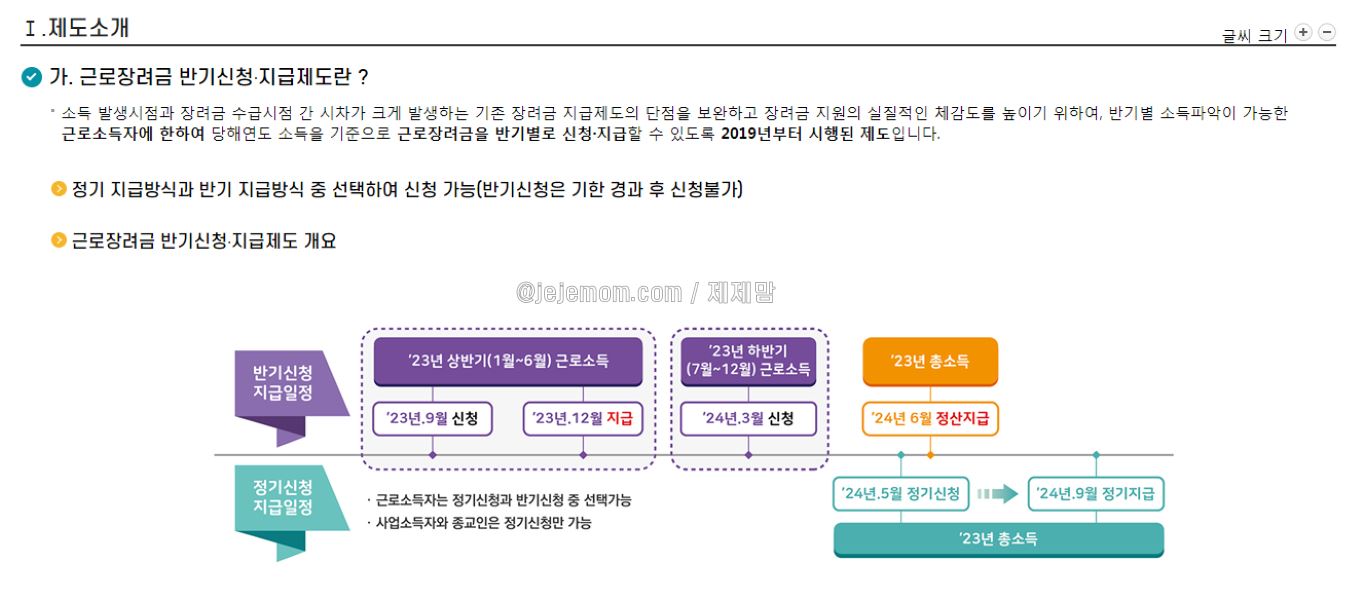 반기 근로 장려금은 소득 발생시점과 장려금 수급시점 간 시차가 크게 발생하는 기존 장려금 지급제도의 단점을 보완하여 만들어졌습니다.