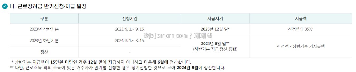 - 반기 신청 : 상반기분 근로소득만 있는 가구/하반기 근로소득만 있는 가구입니다.