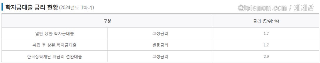 - 취업 후 상환 학자금 대출 : 변동금리 1.7%