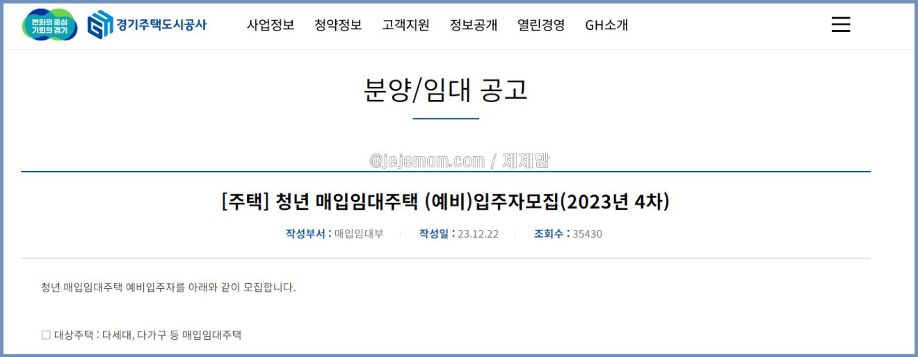 청년 매입임대주택 (예비)입주자모집(2023년 4차) | GH 경기주택도시공사